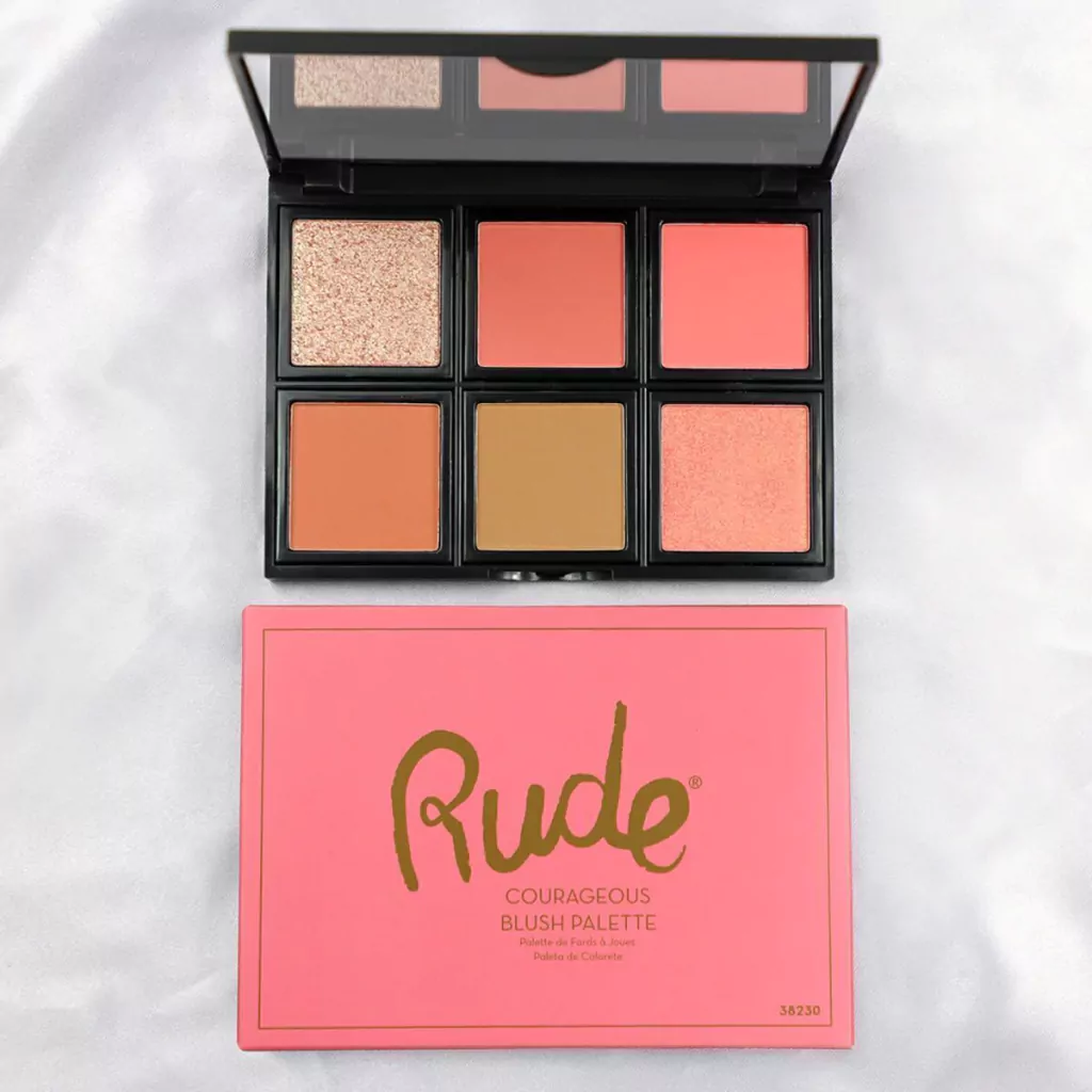 Rude Cosmetics Courageous Blush Palette está aquí para silenciar tus miedos. Con cuatro tonos mate y dos brillos, tu rostro de juego irradiará nada más que confianza.